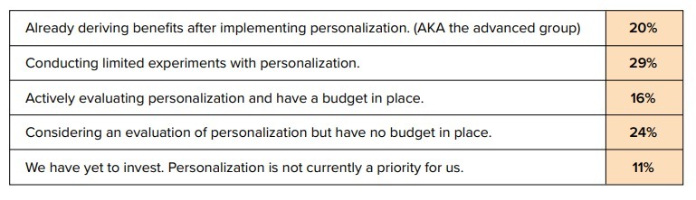 Personalization is not yet the norm, though — which could leave many companies in the dust when customers decide what brands are worth their time. In a recent survey of more than 900 digital customer experience practitioners conducted by CMS Wire, only 20% of respondents said they currently achieve benefits through personalization. The remaining 80% were much less likely to invest in many tools and technologies that help them personalize effectively. Without these tools, these companies are missing out on a vital ingredient for a successful customer journey.